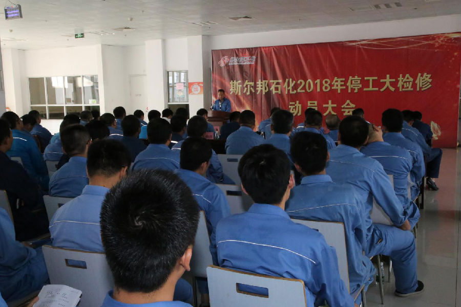 會(huì )議由斯爾邦石化安全總監郭榜立主持,斯爾邦石化設備副總經(jīng)理楊瑞平首先作檢修動(dòng)員報告,介紹了大檢修的總體情況、任務(wù)總量和整體目標,確立“安全、環(huán)保、優(yōu)質(zhì)、高效、科學(xué)、有序”的檢修方針,以及“零事故、零環(huán)保、零傷害”的安全環(huán)保目標,重點(diǎn)強調了檢修過(guò)程中的安全環(huán)保管理與監督、檢修質(zhì)量管理及檢修進(jìn)度管理等要求。
