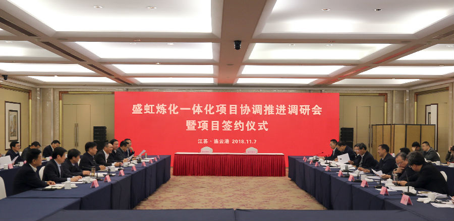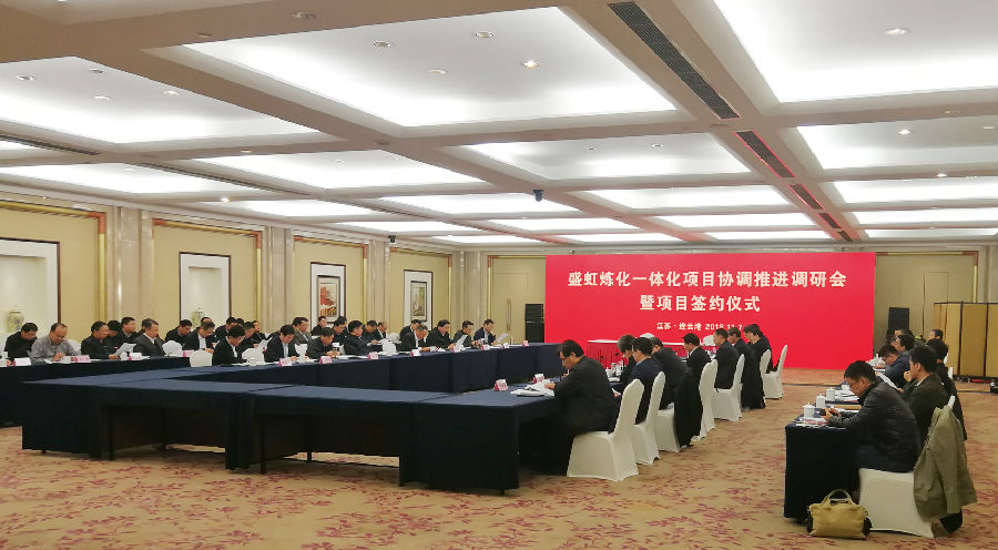 117日,盛虹煉化一體化項目協(xié)調推進(jìn)調研會(huì )暨項目簽約儀式在連云港市舉行。省委常委、常務(wù)副省長(cháng)、省委秘書(shū)長(cháng)樊金龍主持會(huì )議,省發(fā)展改革委、省工業(yè)和信息化廳、省自然資源廳、省生態(tài)環(huán)境廳、省商務(wù)廳、省應急管理廳、省能源局和連云港市、徐圩新區主要領(lǐng)導參加會(huì )議,董事長(cháng)繆漢根匯報盛虹集團發(fā)展情況以及煉化一體化項目實(shí)施計劃。