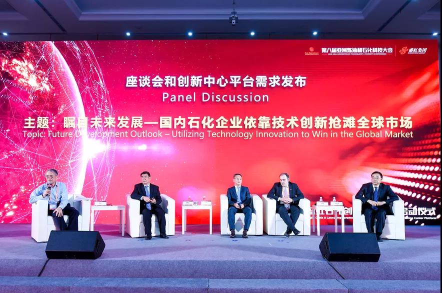 儀式上,中國化工學(xué)會(huì )常務(wù)理事、高級顧問(wèn)洪定一,中國石油和化學(xué)工業(yè)聯(lián)合會(huì )副會(huì )長(cháng)傅向升,江蘇省化工行業(yè)協(xié)會(huì )會(huì )長(cháng)秦志強,巴斯夫新技術(shù)與技術(shù)授權全球負責人安思奮,斯爾邦石化總經(jīng)理白瑋共同登臺,進(jìn)行了《矚目未來(lái)發(fā)展——國內石化企業(yè)依靠技術(shù)創(chuàng )新?lián)尀┤蚴袌?chǎng)》主題座談,共同探討石化產(chǎn)業(yè)技術(shù)發(fā)展趨勢,為行業(yè)開(kāi)展創(chuàng )新工作建言獻策。